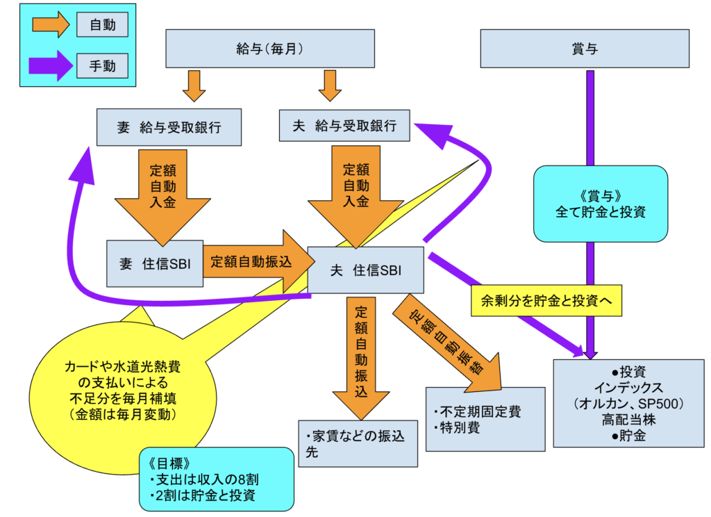 - 定額自動振込で妻から夫の住信SBIネット銀行へ集約