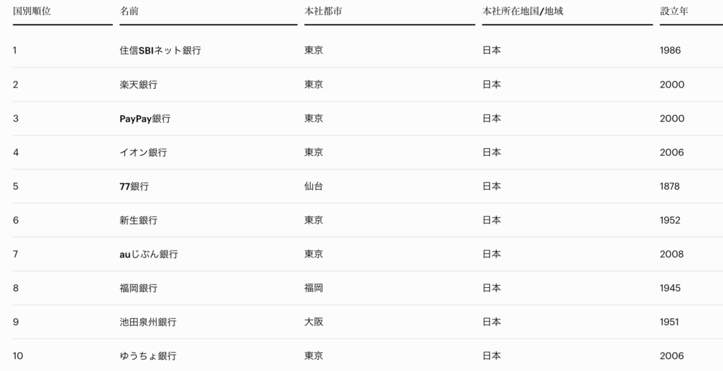 上位はネット銀行。時代は徐々に変わっていきますね。