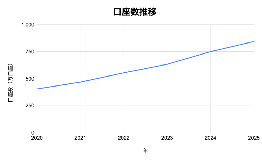 5年で約2倍!口座数はきれいな右肩上がりで伸び続けています。