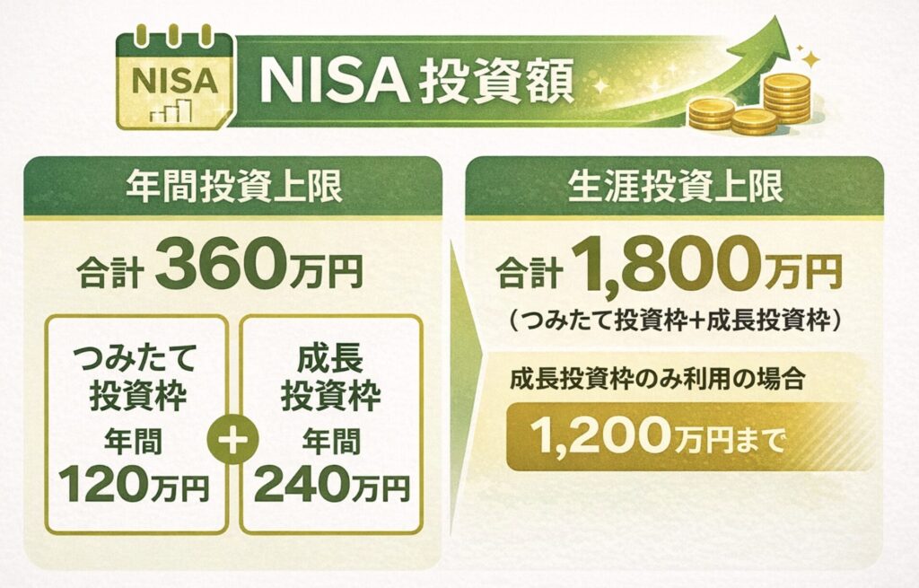2024年からの新NISAは、非課税保有期間が無期限で、年間投資枠は最大360万円、非課税保有限度額は1,800万円です。運用益や配当・分配金が非課税になる一方で、元本保証がある制度ではありません。