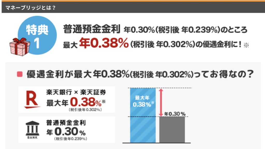 楽天証券との連携「マネーブリッジ」で金利0.38%