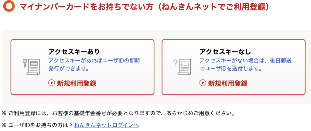 下記の通り、マイナンバーカードを持っていないかたは以下の通り、年金定期便に記載されているアクセスキーが必要です。