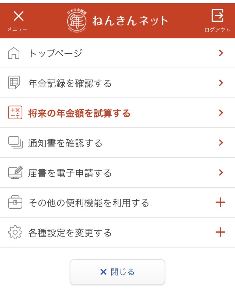ねんきんネットにログインして「将来の年金額を試算する」をタップすると自分の受け取るであろう計算された受取額を見ることができます。
