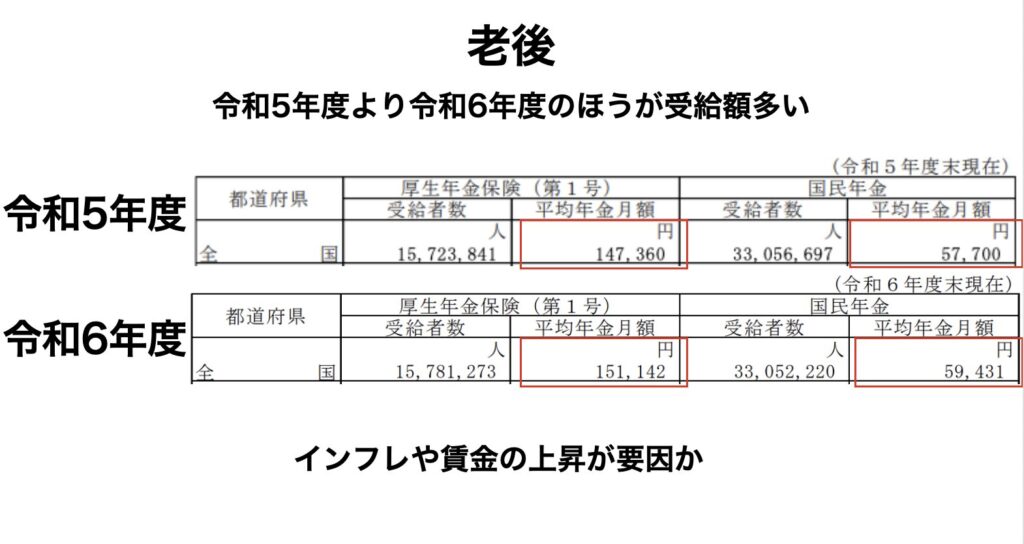 令和5年から令和6年で老齢年金部分の受取額実績は上がっている。