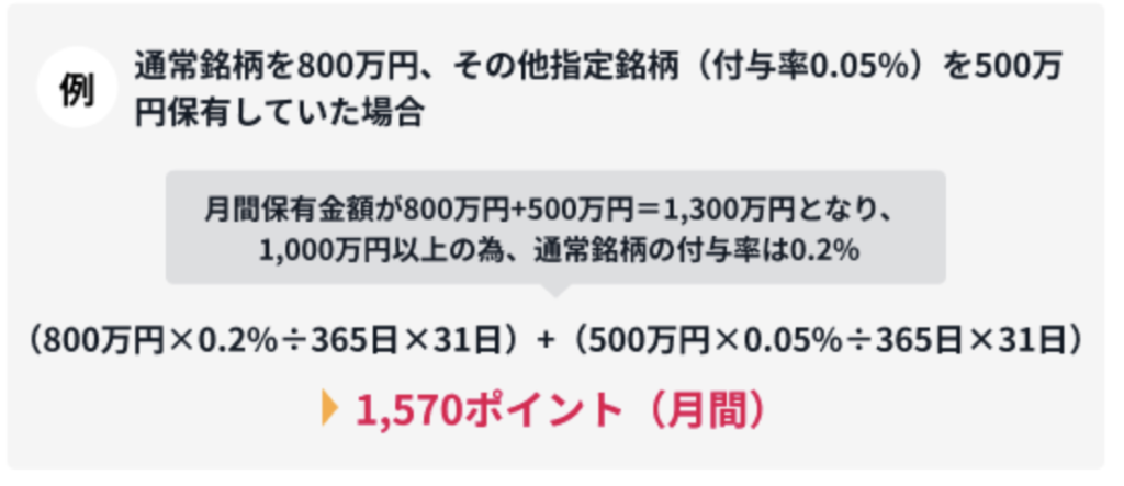 投資信託保有額が半分の650万円だとしても、約800ポイントが付与されます。