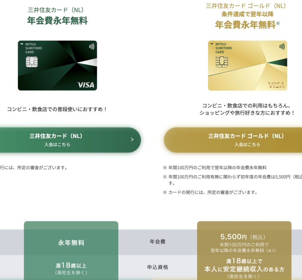 ネット銀行をメイン銀行にしたいので、三井住友銀行と紐付けなくても発行できる三井住友NLカードが一番のおすすめです。
