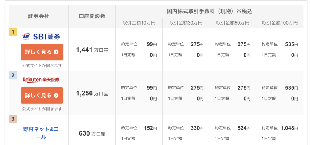 他の証券会社と口座数を比較してみましょう。