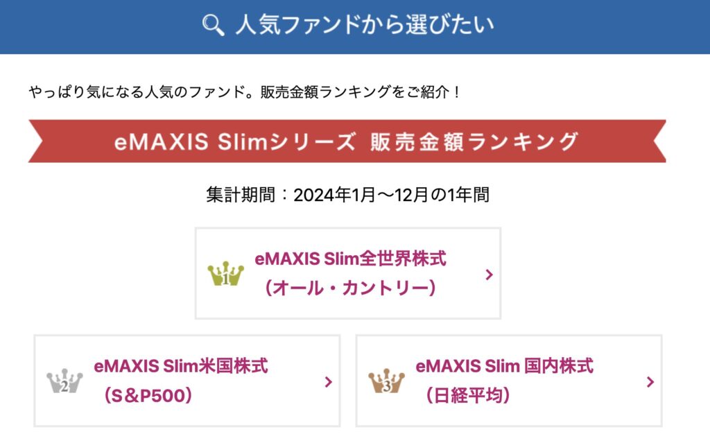 もちろん、eMAXIS Slimシリーズも買えますよ☺️
