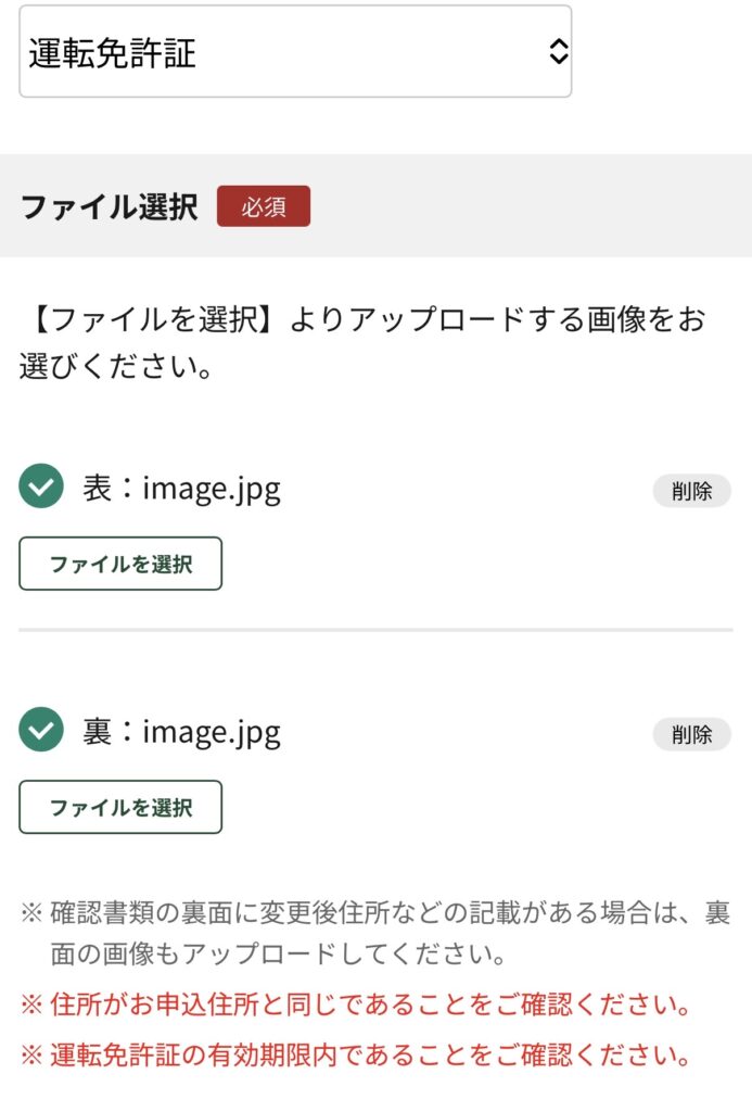 本人確認書類運転免許証または運転経歴証明書