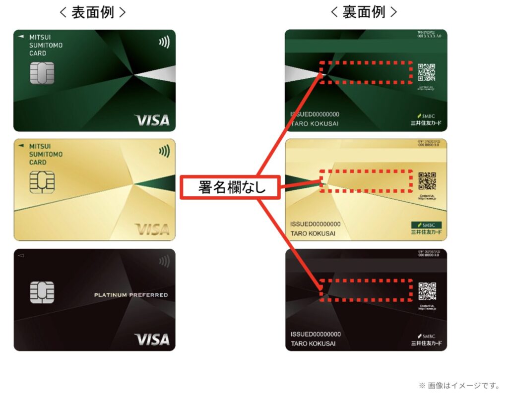 三井住友カード(NL)は2022年11月よりカード裏面の署名欄(サインパネル)がない「サインパネルレス」カードとして発行されています。
