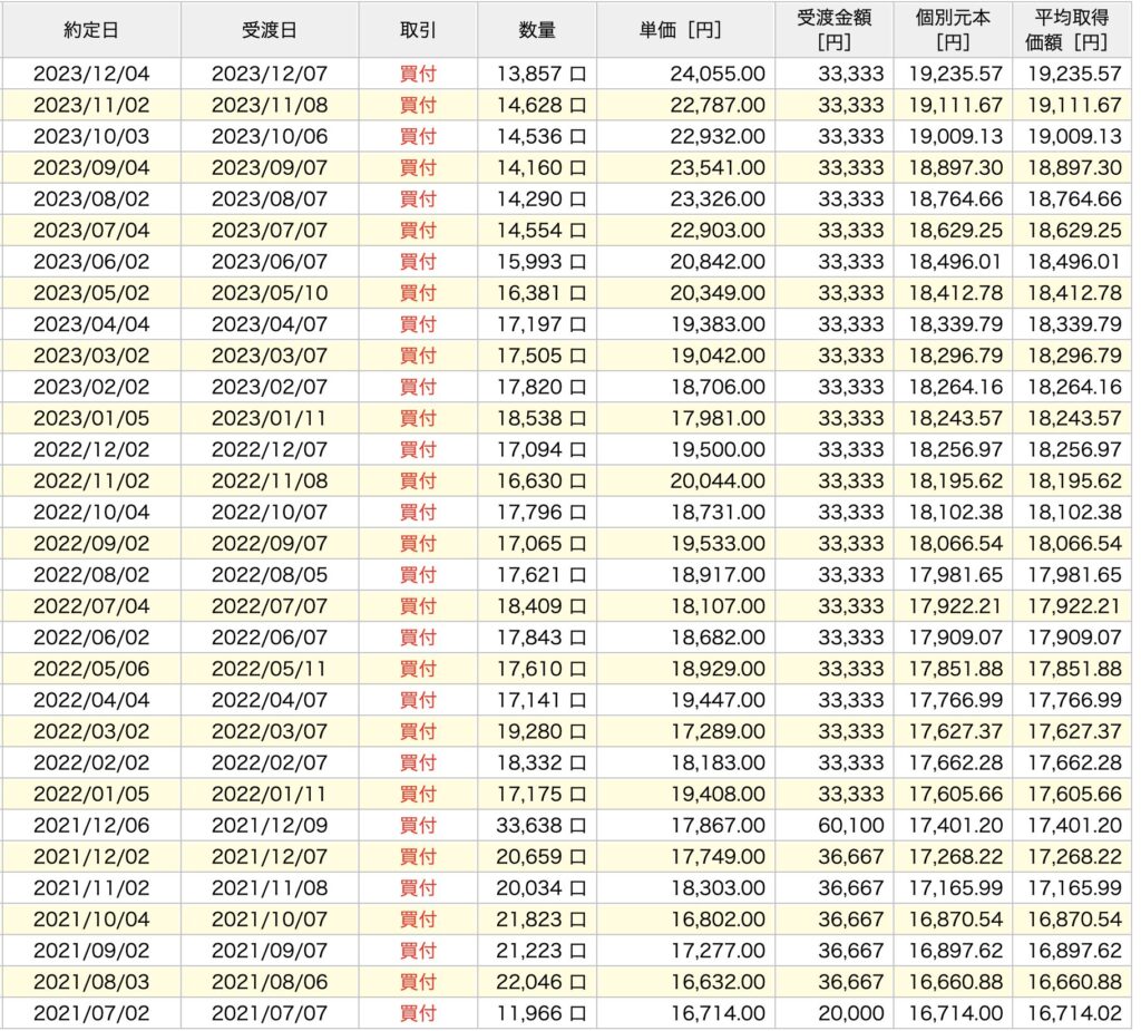 先ほどの積立明細を見ると、毎月の記録がズラリと並んでいます。