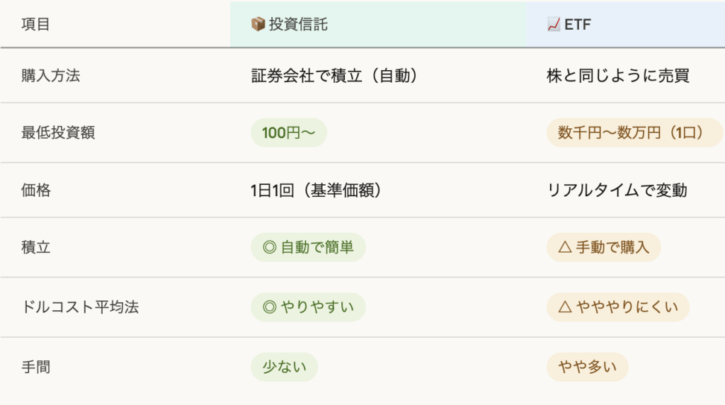 ETFと投資信託は投資先はほとんど同じですが、これだけ違いがあります。