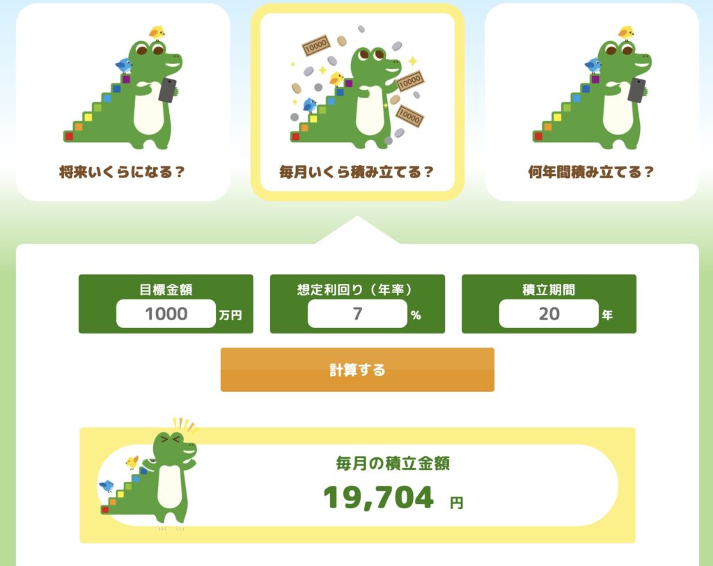 まずは老後資金や教育資金を設定して毎月の積み立て金額を算出してみましょう!
