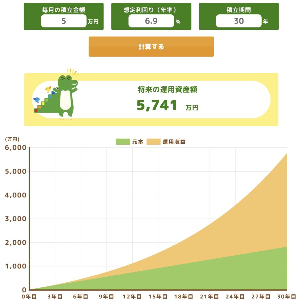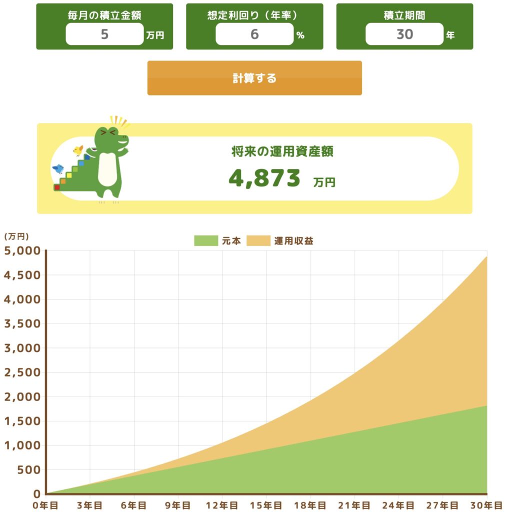 金融庁のサイトで複利を活かした投資成績のシュミレーションができます。