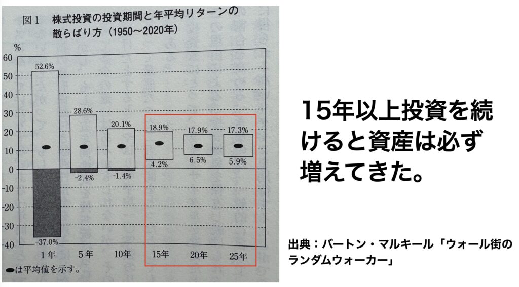 簡単に説明すると15年以上投資を継続していれば元本割れリスクを減らすことができます。