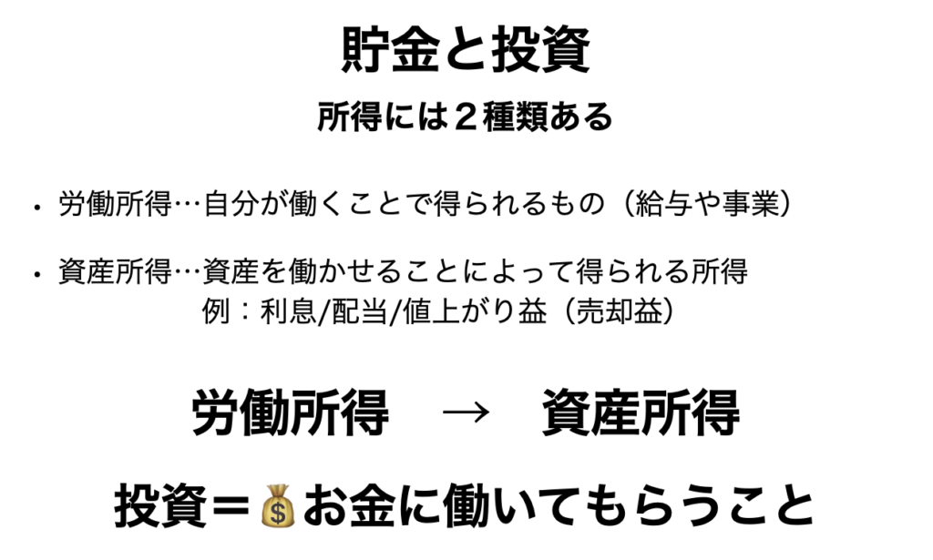 ・「投資とはお金に働いてもらうこと」